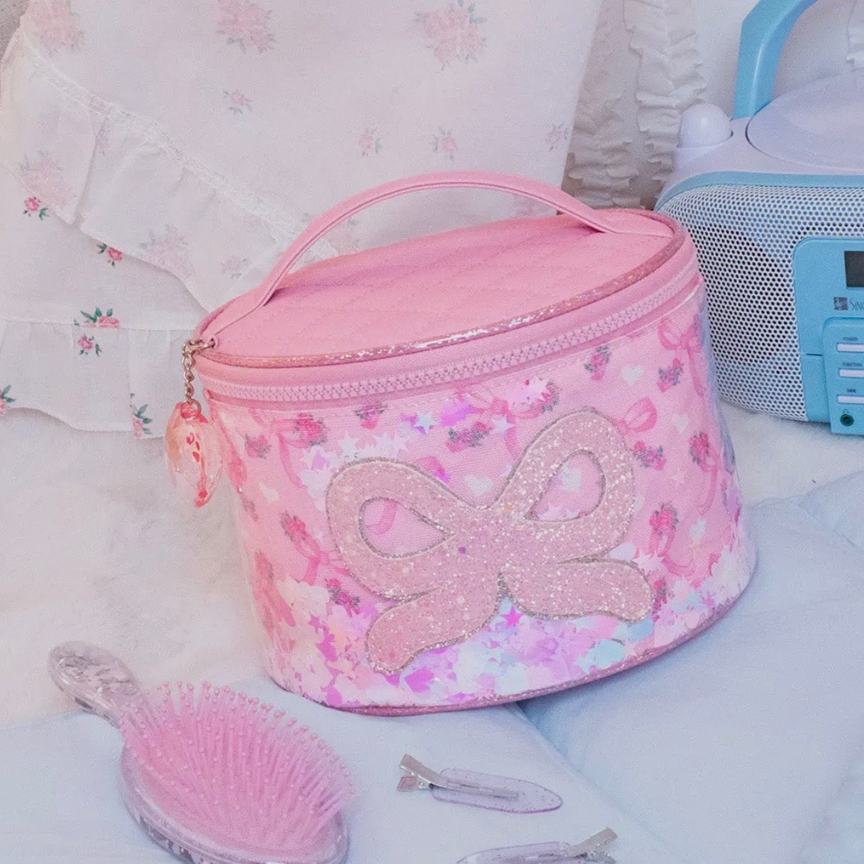OMG Confetti Floral Bow Round Glam Bag