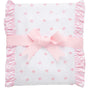 Precious burp cloth with pink bow fabric and pink gingham ruffle edging.
