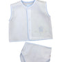 Precious two piece diaper set with blue piped edging and button-up diaper cover.