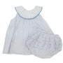 Adorable bloomer set with white peter pan collar trimmed with blue ric rak!