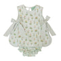 Adorable floral print on this apron style bloomer set! Big sister dress match available.