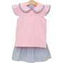 Trotter Street Girls Camilla Skort Set-Light Pink/Dusty Blue Stripe